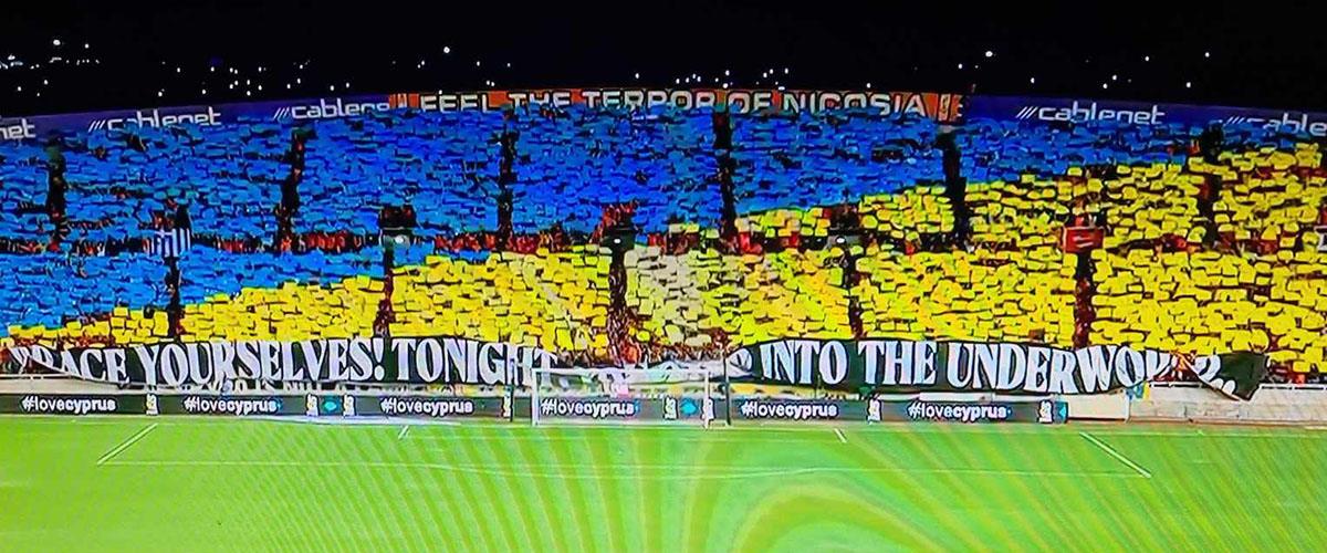 Με ένα εντυπωσιακό κορεό υποδέχθηκαν τους ποδοσφαιριστές οι φίλοι του ΑΠΟΕΛ, πριν τη σέντρα της ρεβάνς με τη Γάνδη.