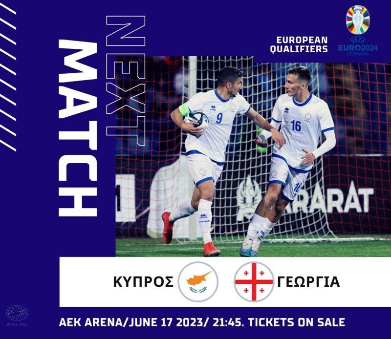 Η Εθνική μας ομάδα των Ανδρών αντιμετωπίζει στις 17 Ιουνίου στο ΑΕΚ Αρένα στις 21:45 την Εθνική Γεωργίας σε αγώνα για την 3η αγωνιστική του πρώτου προκριματικού ομίλου του EURO 2024.