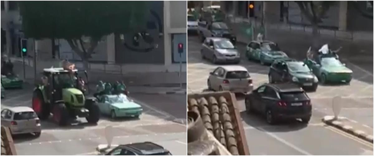 ΒΙΝΤΕΟ: Ξεχύθηκε στους δρόμους με τρακτέρ και βαμμένα αυτοκίνητα ο πράσινος λαός