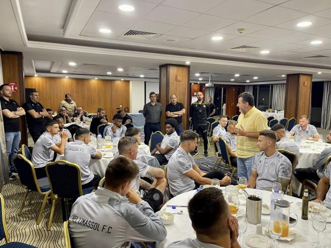 Όπως αναφέρουν οι γαλαζοκίτρινοι της Λεμεσού, μίλησε στους ποδοσφαιριστές και τους ευχήθηκε καλή επιτυχία.