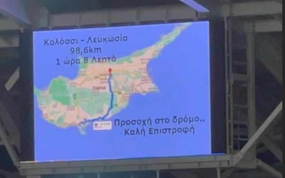 Συγκεκριμένα, στη γιγαντοοθόνη του «Αλφαμέγα» εμφανίστηκε οδικός χάρτης Λεμεσού – Λευκωσίας, με τη λεζάντα «καλή επιστροφή στη Λευκωσία».