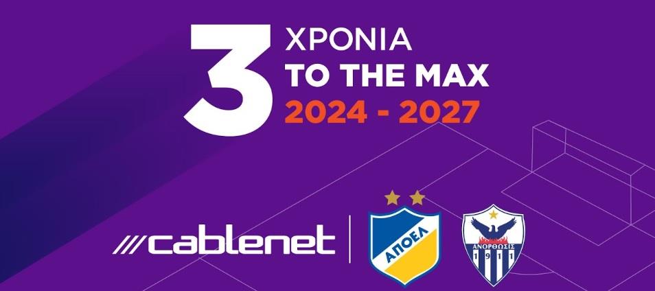 Η Cablenet ανακοινώνει την επέκταση της συνεργασίας της με τον ΑΠΟΕΛ και την Ανόρθωση, για την περίοδο 2024-2027.