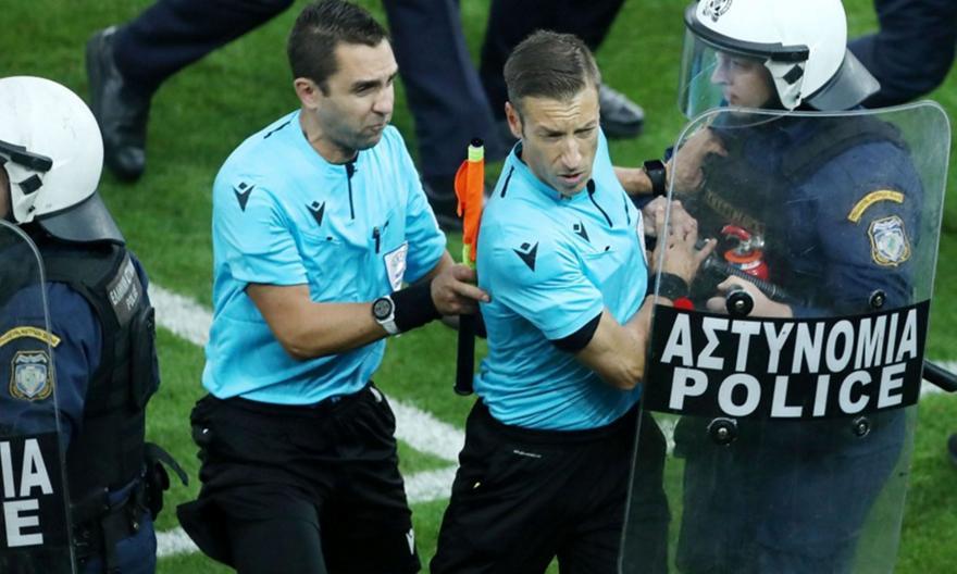 Στο φύλλο αγώνα που συνέταξε ο Ιταλός διαιτητής μετά την πρόωρη λήξη του Ολυμπιακός-ΑΕΚ, κάνει λόγο για επίθεση στη φυσούνα.