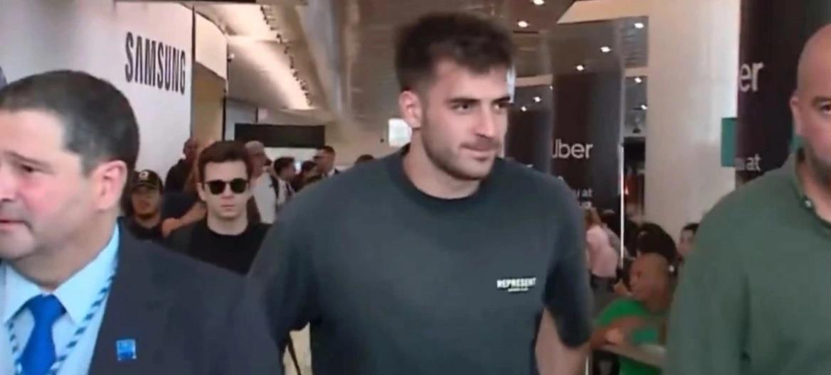 Ο 25χρονος σέντερ φορ προσγειώθηκε στην πορτογαλική πρωτεύουσα και αμέσως περικυκλώθηκε από φωτογράφους και ρεπόρτερ που έτρεξαν να του αποσπάσουν μία πρώτη δήλωση. Ένας εξ αυτών, μάλιστα, τον ρώτησε εάν θα είναι... ο επόμενος Γιόκερες. Ο Έλληνας διεθνής έκανε ένα σύντομο σχόλιο στις κάμερες, λέγοντας ότι είναι χαρούμενος που είναι εκεί.
