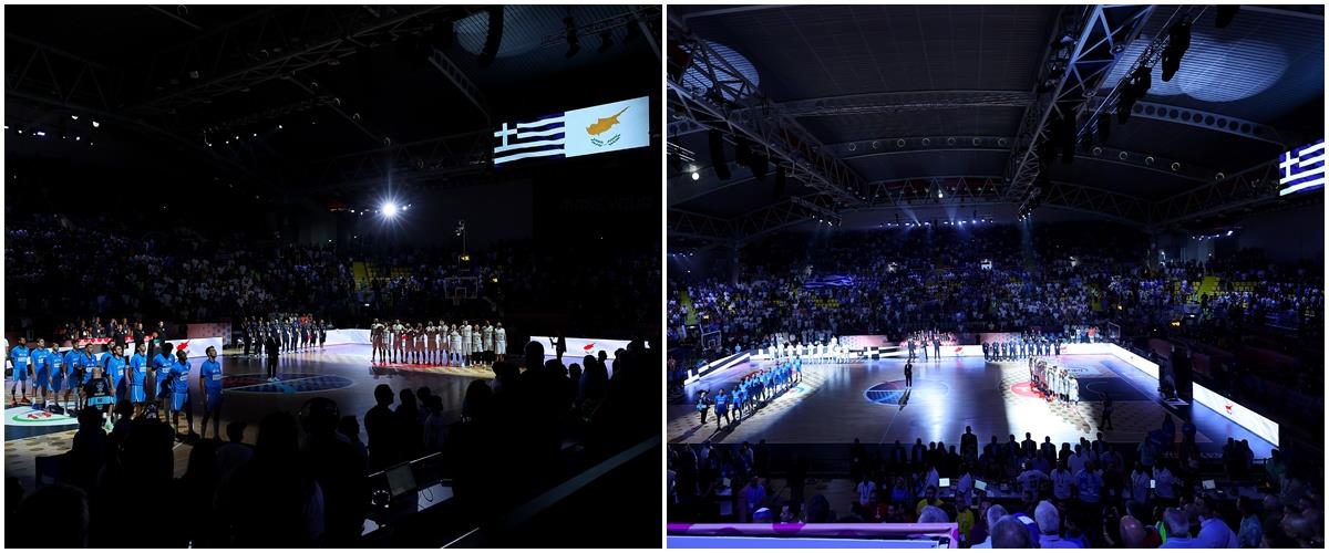 Συγκλονιστικές στιγμές στο κατάμεστο Αθλητικό Κέντρο Σπύρος Κυπριανού, με τον κοινό εθνικό ύμνο να καθηλώνει τον κόσμο στη Λεμεσό πριν από το το παιχνίδι ανάμεσα σε Κύπρο και Ελλάδα για τη 2η αγωνιστική του Group C στο EuroBasket 2025.