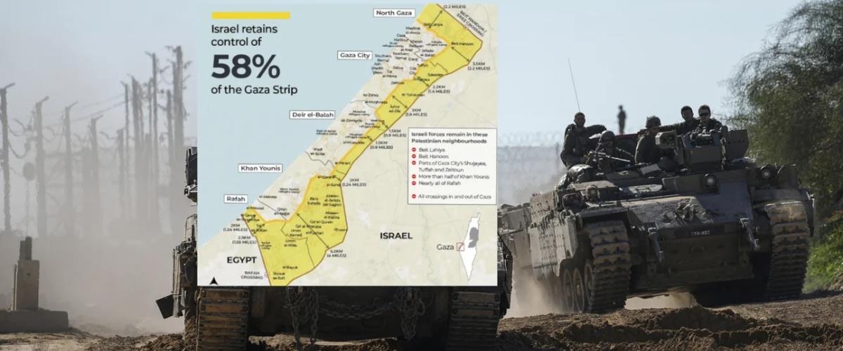 Με βάση τη συμφωνία για την εκεχειρία προς το παρόν, το Ισραήλ διατηρεί τον έλεγχο άνω του 80% της Γάζας — περιοχής έκτασης 365 τ.χλμ.