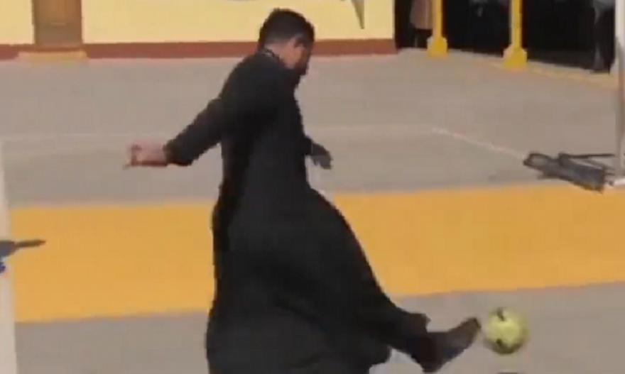 Viral έχει γίνει ένας ιερέας που ενώ φορούσε το ράσο του, έπαιξε μπάλα με μικρά παιδιά και τους έκανε... πλάκα!