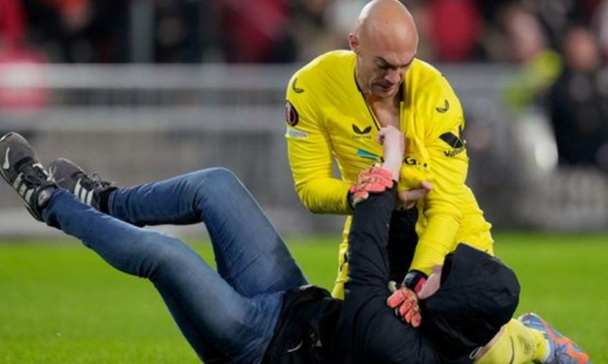 Με 40 χρόνια απαγόρευσης εισόδου στο «Phillips Stadion» τιμώρησε η Αϊντχόφεν τον οπαδό της που εισέβαλε στον αγωνιστικό χώρο και επιτέθηκε στον τερματοφύλακα της Σεβίλλης, Μάρκο Ντμίτροβιτς στο πλαίσιο της επαναληπτικής αναμέτρησης μεταξύ των δύο ομάδων για τα playoffs του Europa League.