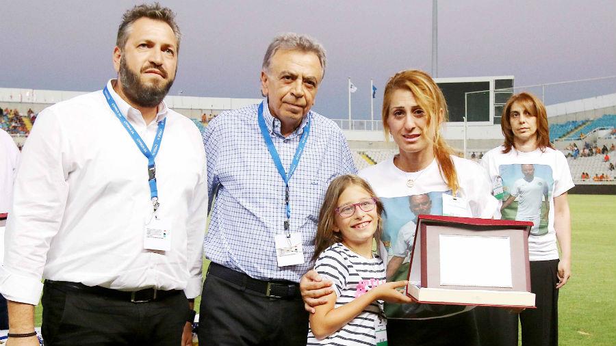Πριν την έναρξη του παιχνιδιού στο ΓΣΠ, το βράδυ της Τετάρτης (10/08), δόθηκαν τιμητικές πλακέτες στις οικογένειες τους από τον Πρόεδρο της ΚΟΠ κ. Κωστάκη Κουτσοκούμνη.