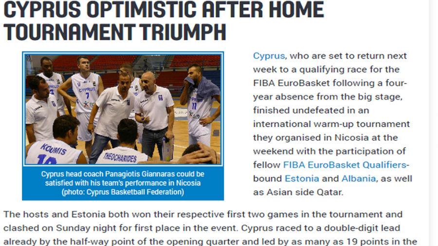 Η Εθνική Ανδρών της Κύπρου επιστρέφει σε αγώνες για τα προκριματικά του Ευρωμπάσκετ μετά από απουσία τεσσάρων ετών, και η ιστοσελίδα της FIBA ετοίμασε ένα σχετικό αφιέρωμα, στο οποίο γίνεται αναφορά στο αήττητο σερί του αντιπροσωπευτικού μας συγκροτήματος στα φιλικά που πραγματοποιήθηκαν σε κυπριακό έδαφος