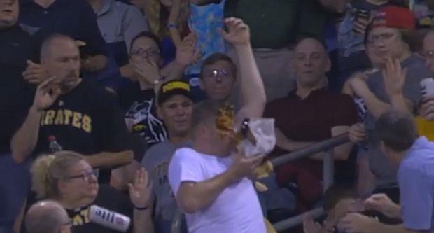 Ένας φίλαθλος των Pirates προσπάθησε να πιάσει μία μπάλα που έφυγε προς την κερκίδα, όμως αυτή για την μπάλα έφαγε στη μούρη ένα πιάτο... νάτσος με μουστάρδα