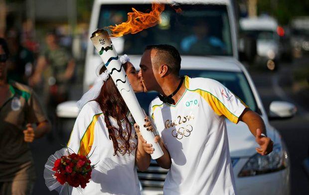 Κατά τη διάρκεια της λαμπαδηδρομίας της Ολυμπιακής Φλόγας, ένας Βραζιλιάνος επέλεξε να κάνει πρόταση γάμου στην αγαπημένη του