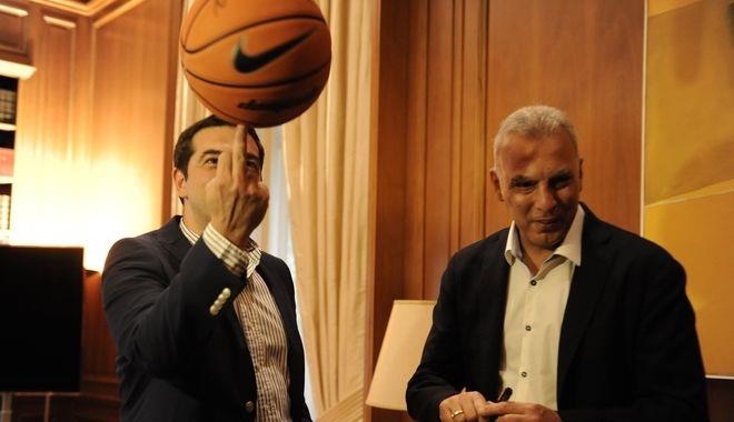 Στο Μέγαρο Μαξίμου για να τιμηθεί από τον Πρωθυπουργό, Αλέξη Τσίπρα βρέθηκε ο ζωντανός θρύλος του ελληνικού μπάσκετ, Νίκος Γκάλης. Και πήρε και αυτόγραφο από τον πρώην άσο του Άρη και του Παναθηναϊκού (Pics)