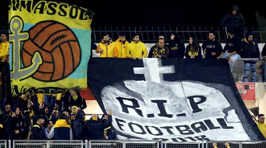 Οι οπαδοί των «γαλαζοκιτρίνων» ανήρτησαν πανό στο οποίο έστειλαν μήνυμα… θανάτου του κυπριακού ποδοσφαίρου.